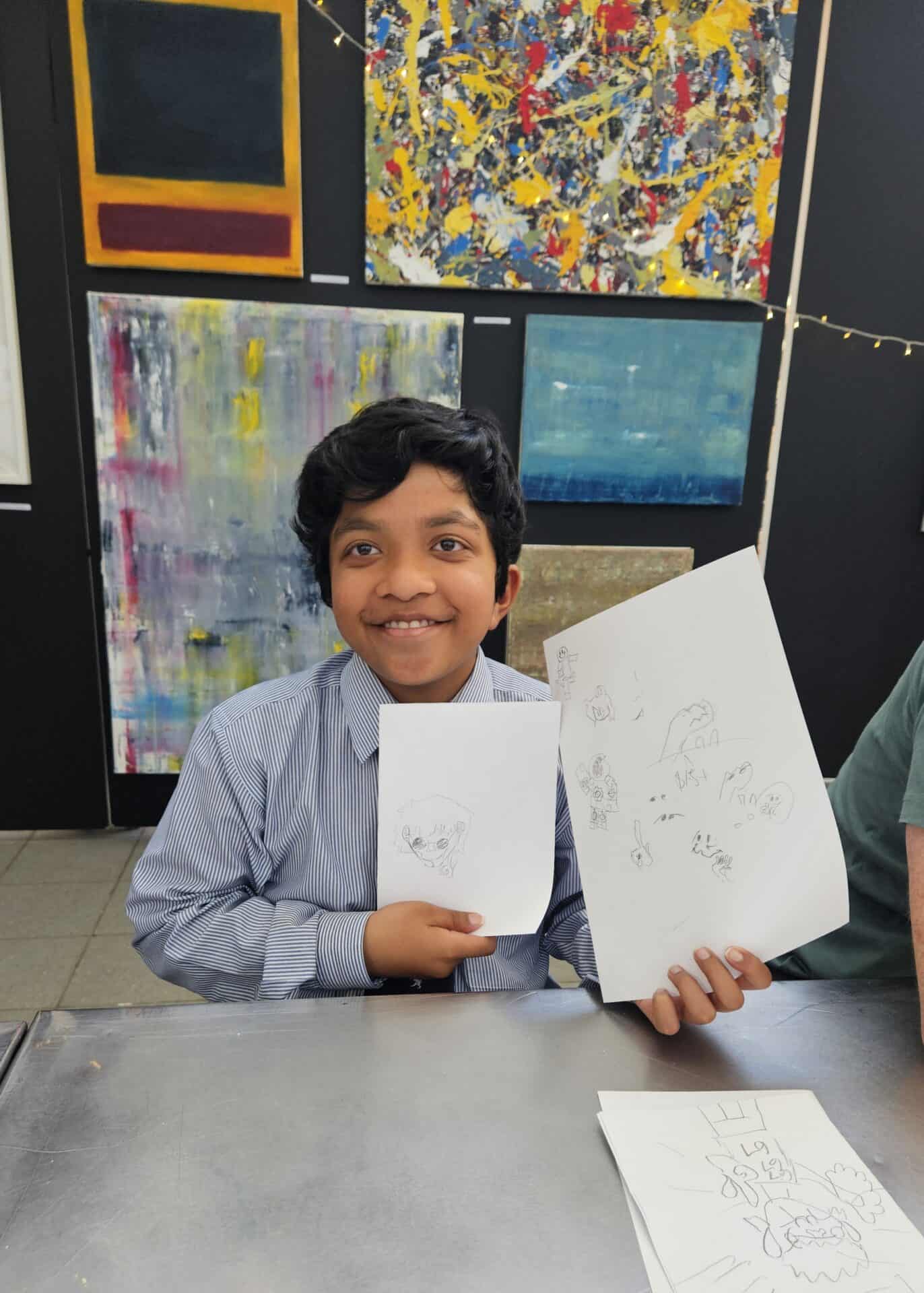 The festivities included delicious refreshments and a selection of inclusive, Christmas-themed art activities. Participants took on rapid-fire challenges, drawing Christmas trees, portraits, and even Christmas poems in only a few minutes – with one prompt completed blind! Despite the seemingly impossible tasks, parents, siblings and artists alike rose to the occasion, producing remarkable work. With the final touches carefully attained through watercolour painting, each participant left with a set of four charming, festive, handmade Christmas cards!