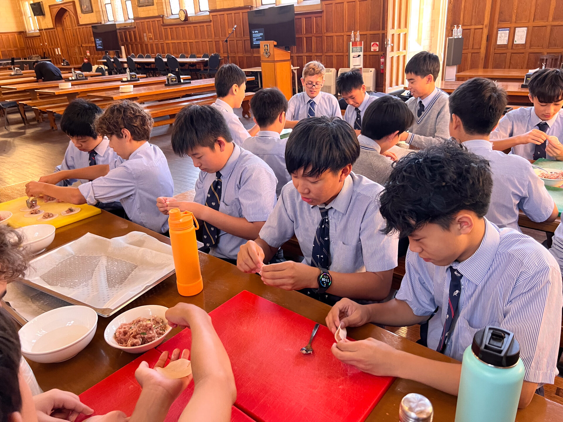 Year 8 classes had the opportunity to participate in the annual “Dumplings in Da Costa” Chinese food culture immersion activity, which they greatly enjoyed. During this activity, students learned how to make dumplings using soft wrappers and tender chicken fillings, folding them into various shapes. They also took part in the Chopsticks Challenge team event, where they passed a single Jelly Bean using chopsticks down a table and back again. The excitement of the challenge added to the lively atmosphere of the event. After completing the challenge, students were served the boiled dumplings by the chefs at Da Costa and enjoyed them together in the spirit of Chinese culture.