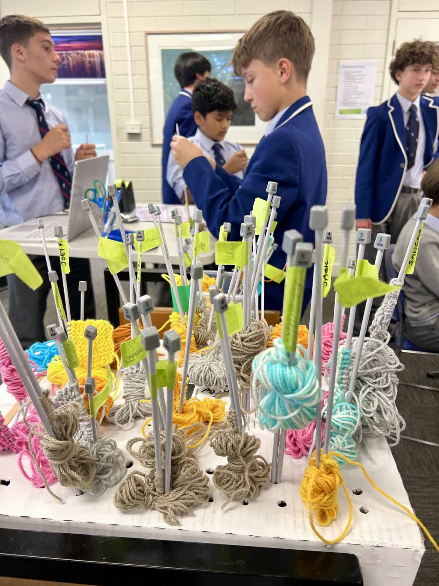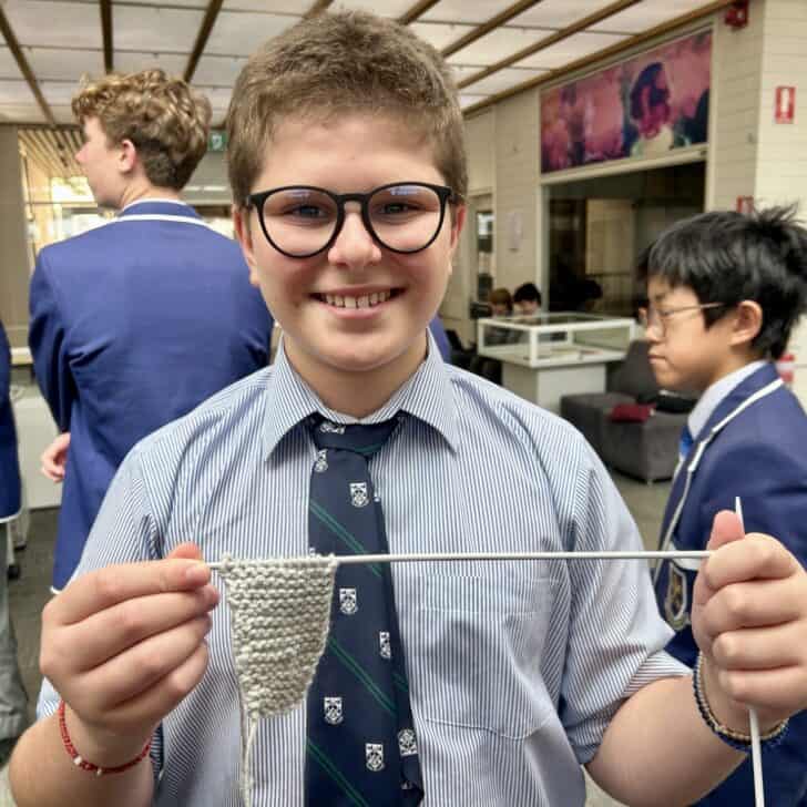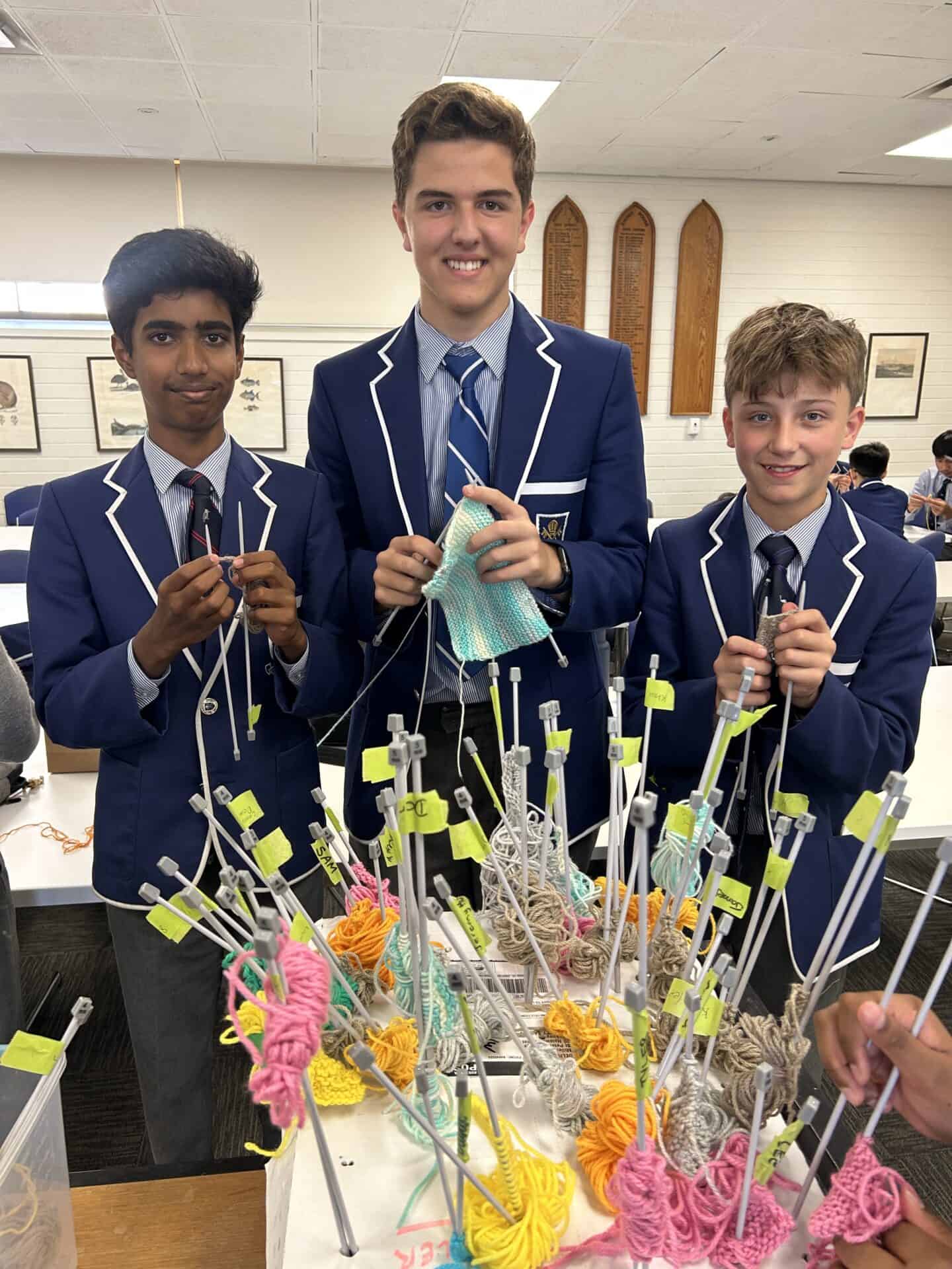 I quickly encouraged many other students in my class to hop onboard this project. At the beginning, I only had one other dedicated student join me, yet within a week or two, I had not only my four closest friends knitting, but five other students from my class too. From here, I shared ideas to these students to refine their skills and increase their speed, as I was on my tenth square at this point.
