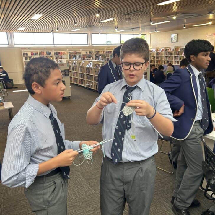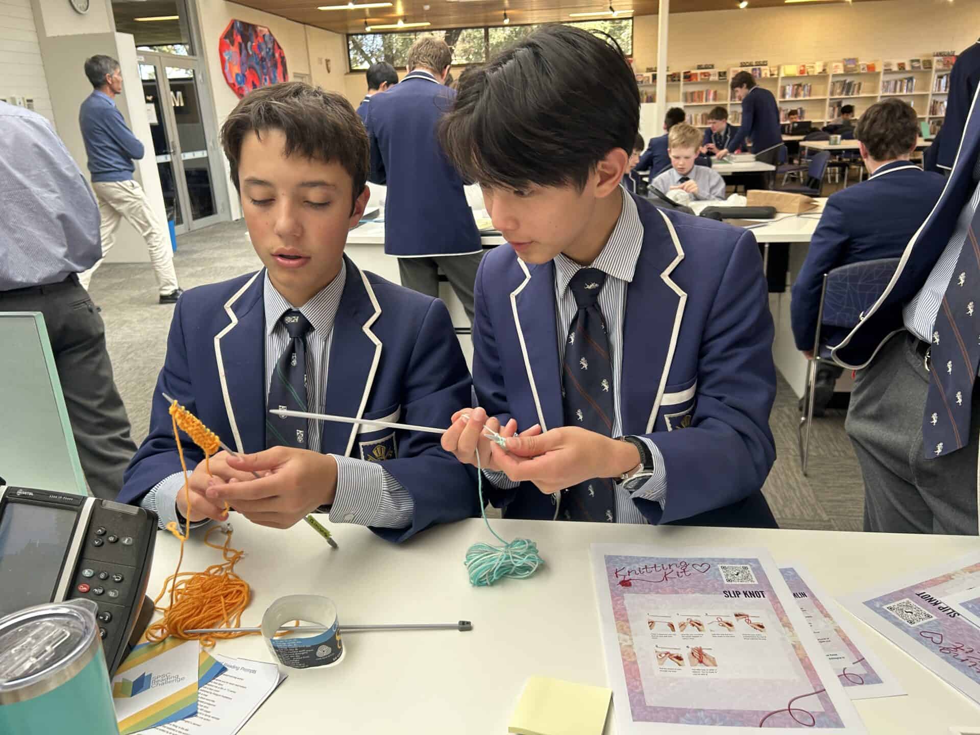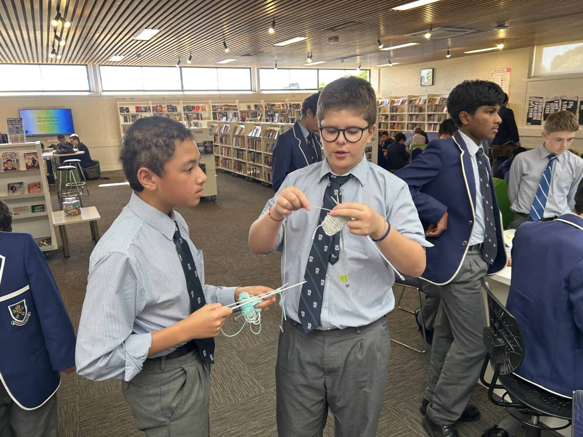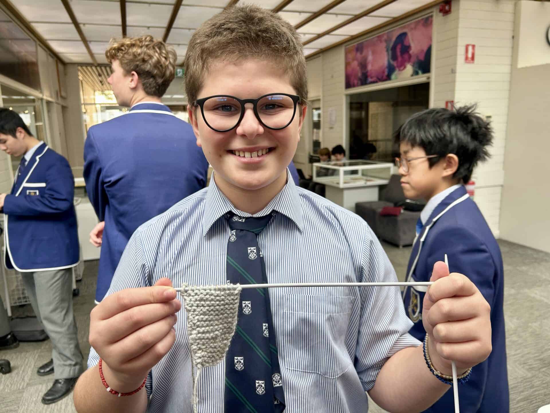 I quickly encouraged many other students in my class to hop onboard this project. At the beginning, I only had one other dedicated student join me, yet within a week or two, I had not only my four closest friends knitting, but five other students from my class too. From here, I shared ideas to these students to refine their skills and increase their speed, as I was on my tenth square at this point.