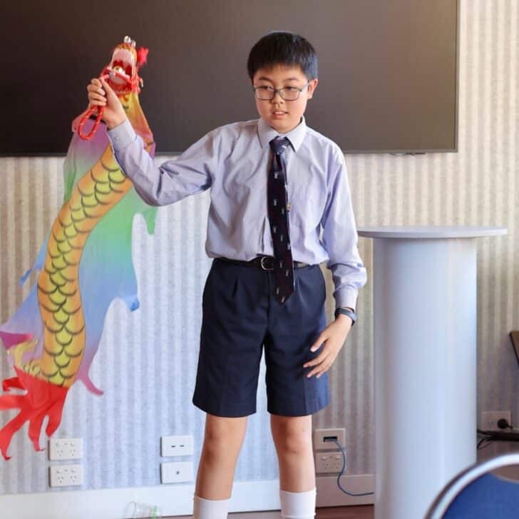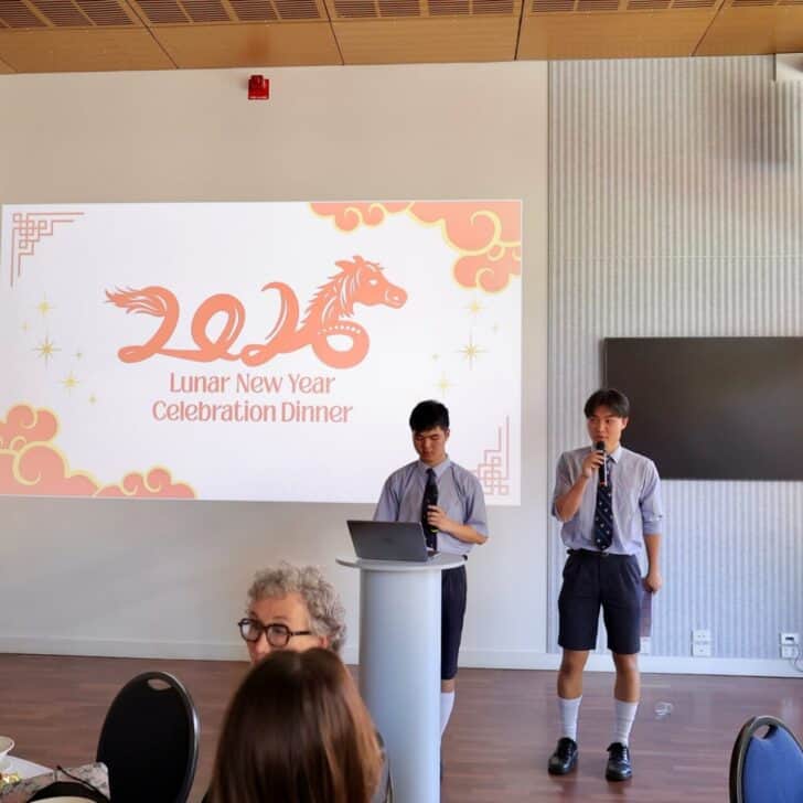 Although we are away from home, being able to share this celebration with boarders, day students, staff and families gave us a strong sense of belonging. It was special to see so many members of the SPSC community come together in support and friendship. Students from both the International and Boarding communities helped prepare and contribute to different parts of the evening. Our MCs, Yu Chen Goh and Michael Bi, led the program with confidence. The evenings performances included a special flower dance, dragon dance, drumming, and a short drama sharing the story of “Nian.”