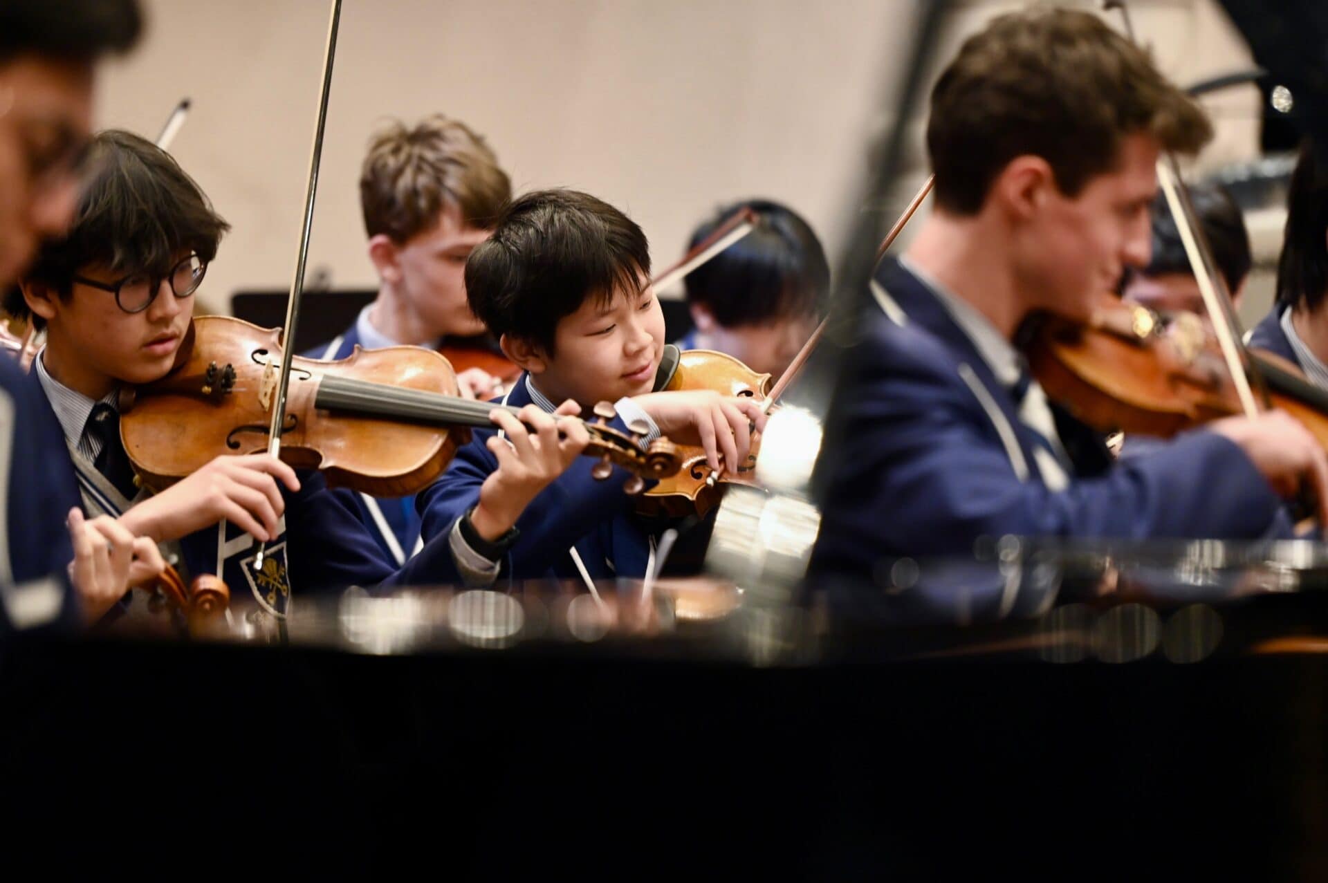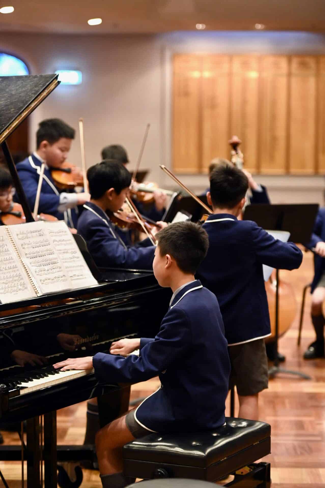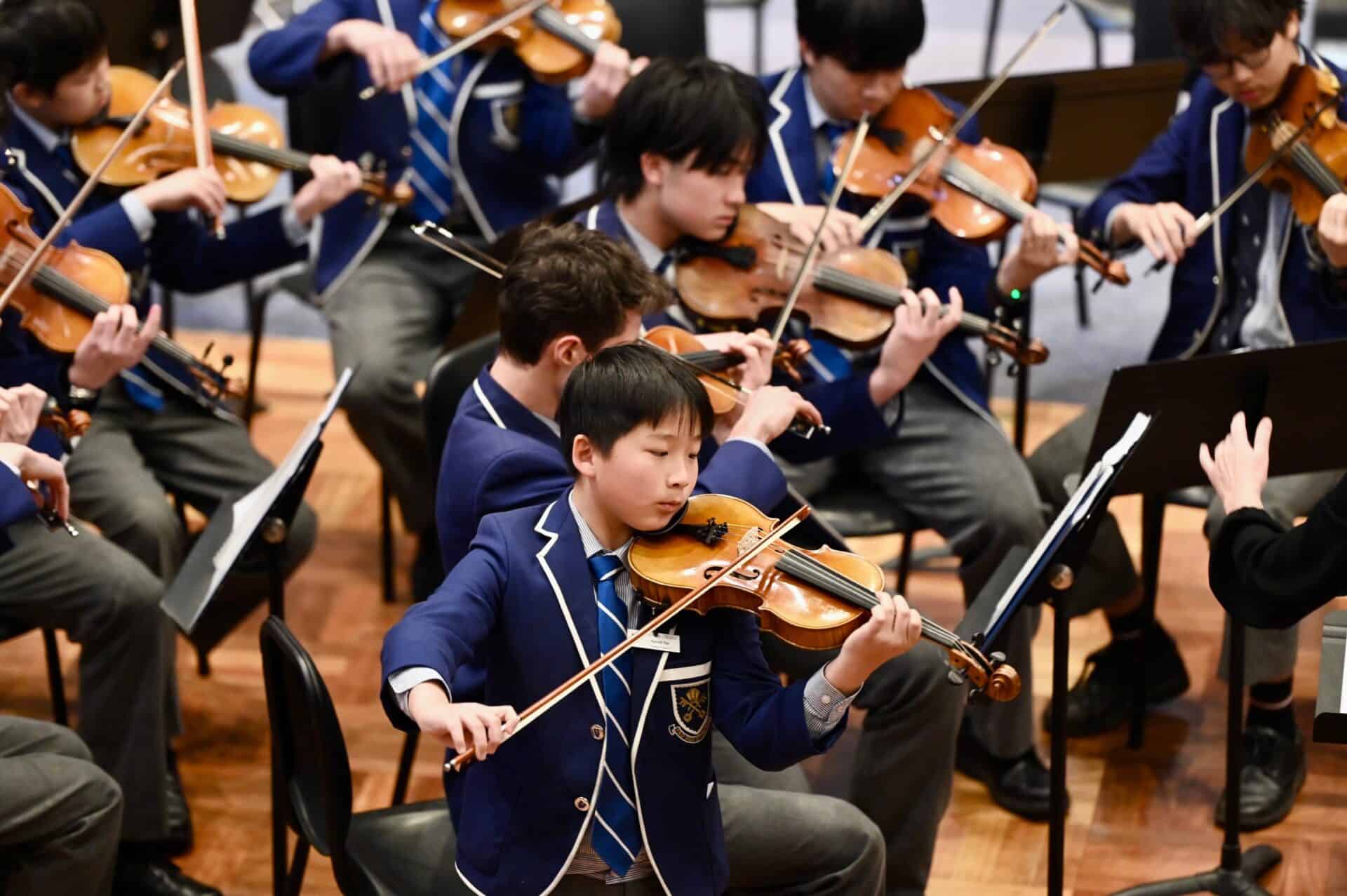 Devon Xu opened the concert with a sparkling Rondo from Beethoven’s 2nd Piano Concerto with Senior Orchestra; Sean Zhang composed a beautiful piece for Junior School Chamber Strings; Harold Dai played an impressive violin solo with Senior String Orchestra and Senior Orchestra with Junior School Chamber Choir concluded the concert with an outstanding combined performance.