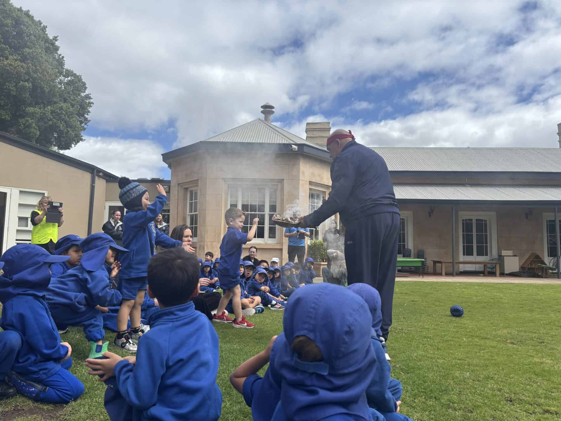 We were very grateful to Uncle John for joining us on Thursday 20 November. He started with a smoking ceremony in the ELC. The Mulberry Tree room then showed him the way down North Tce. At the gardens Uncle John talked to the boys about how everything is connected.